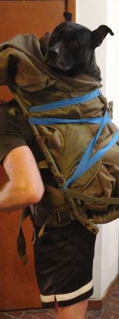 - lentamente incline la mochila vertical mientras que asegurándose de que su perro no está flipando