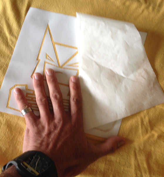 Entonces pelada la transferencia de papel de vinilo. Que tenga que sujetar las piezas de la etiqueta del vinilo de elevación o de desplazamiento fuera de lugar mientras se retira el papel de transferencia.