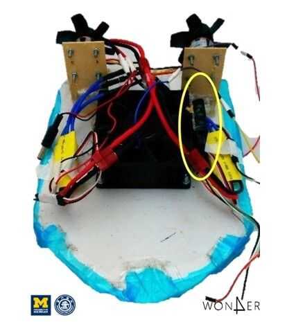 Utilizar las cintas eléctricas para pegar el receptor en un lado del ventilador del radiador como se muestra en la imagen.