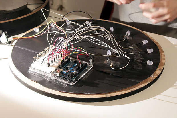 Luego conecte el LED a la tapa con cinta. Puse a los LEDs para el diente del centro y los demás distribuidos uniformemente.