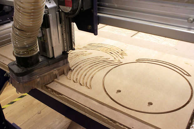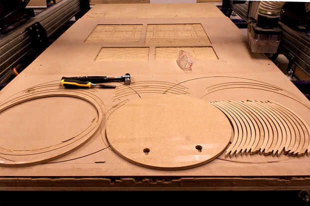 Si usted tiene acceso a una CNC, corté 12 cuartos de un círculo, de un panel MDF ½ + 1 círculo para marco frontal + 1 círculo de la tapa trasera