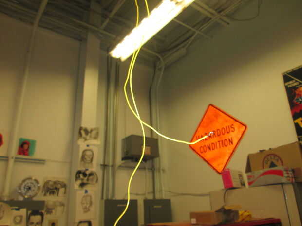 En primer lugar, vas a necesitar un pedazo largo de alambre revestido que cuelga de su techo o un árbol o similar. Agarra una escalera, tenga cuidado y asegúrese de que todo lo que cuelga el cable de dejará suficiente espacio para que un extremo del cable puede colgar libremente sobre la altura de la cara de los jugadores.