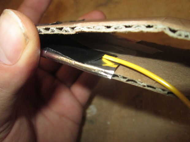 - doblar la cartulina tiras por la mitad para que el alambre expuesto está en el interior del doblez,