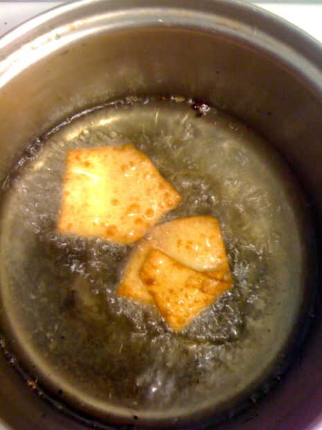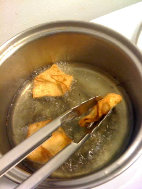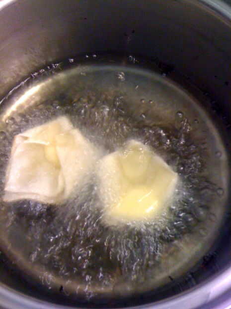 - Wontons de uno o dos de la gota en el aceite (suavemente)