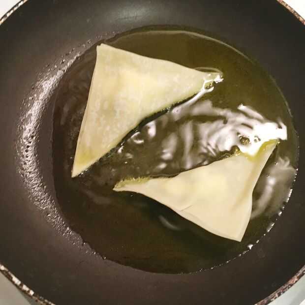 Si tienes una freidora, gran, utilizarlo. No por lo que estoy friendo mi wontons en una cacerola en la estufa. Llene la bandeja con aproximadamente una pulgada de su aceite preferido y deje que se caliente y agradable.