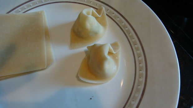 Muy fáciles de hacer. Puede rellenar con carne de res, cerdo, camarones o incluso tofu.Paso 1: método Las cantidades son dependiendo de cuántos tazones de sopa que quieres hacer!Envolturas de wontonPollo escalfado/hervido sazonado, ralladoGuisantes c