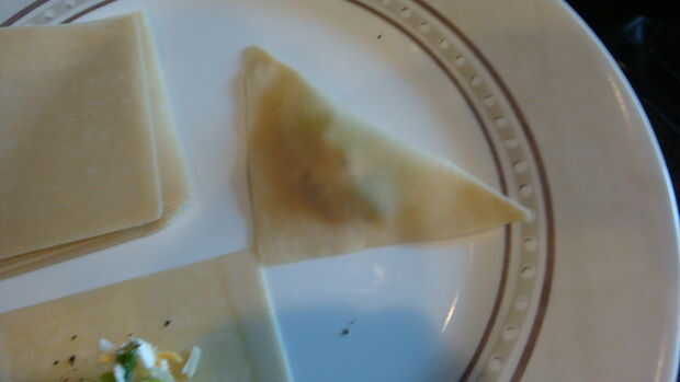 todo el mundo sabe las patatas fritas pero no lo único para hacer virutas con. Utilizar envoltorios de wonton, las utilizadas para bolas de masa hervida y Dim Sum. Siempre tengo algunos en mi congelador, por lo que si tengo invitados inesperados a re