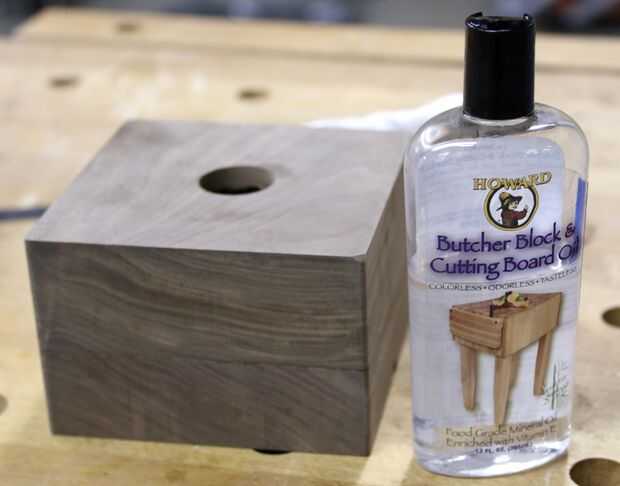 Madera nogal tiene un acabado natural increíble, así que no quiero usar un tinte acabado, sino más bien un aceite de acabado para ayudar a llevar a cabo el ya rico color y textura de la madera. Después de lijar, limpiar la madera con un paño apenas húmedo, para garantizar que el aserrín de todos fue eliminado antes de tratar la madera.
