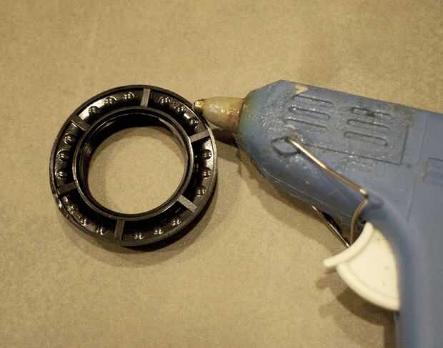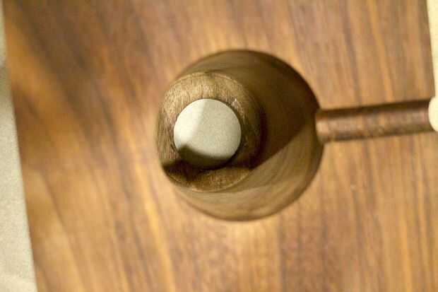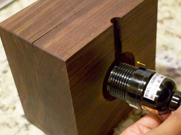 Como se mencionó anteriormente, había jodido el cuello de la lámpara del kit boca abajo, para que sea más amplio punto de fue hacia arriba. Utiliza pegamento caliente (con palillos del pegamento permanente grado) o Epoxy, pegué la parte superior en la parte inferior del "cuello" de los dos orificios. Si ha perforado el perfecto tamaño de agujero, el collar debe ajustarse perfectamente, y el orificio más pequeño en la parte superior del bloque debe permitir una vista sin obstrucciones del otro lado.