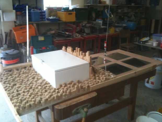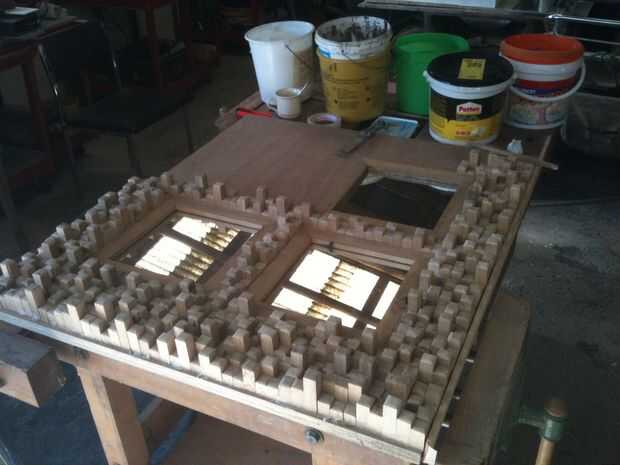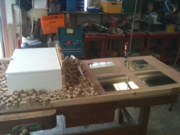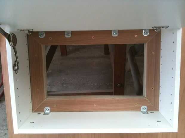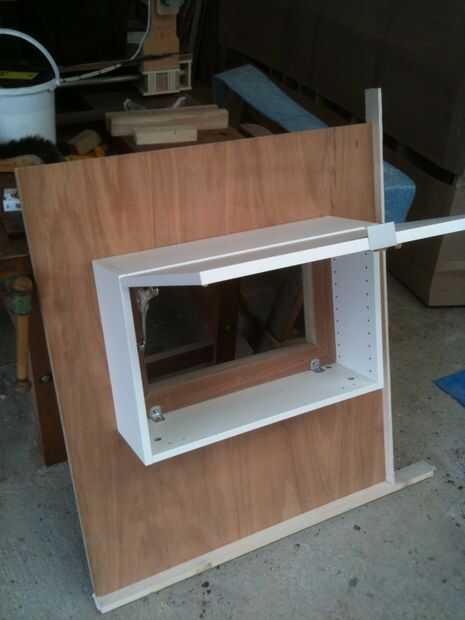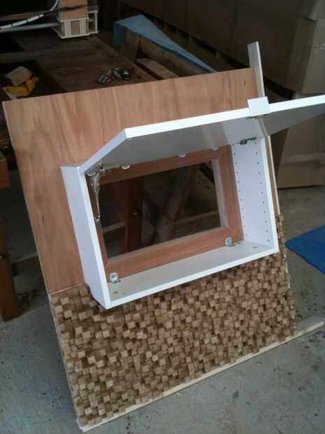 Compré el armario en ikea y montado sobre placa de madera contrachapada e, he cortado por la parte trasera porque necesitaba espacio para llegar a la salida y el principal suministro de agua... igual funciona,... pegado por y en y en;)... agregué 4 espejos y colocado en la madera con el marco de oakwood at... Para el transporte de opté por hacerlo en 2 partes porque se iba a poner muy pesada