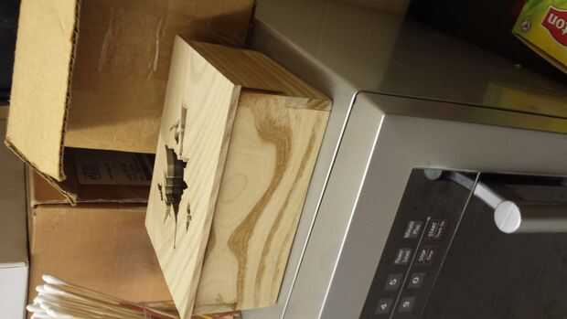 Después de haber completado el diseño, puede pegar el diseño sobre la pieza de madera que es de un color diferente. Lo que hice fue que aerosol pintado la madera de color más ligera en la parte que sería tocar la pieza superior por lo que mostrará el diseño que elegí mejor.
