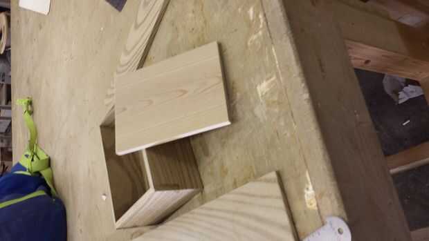 Luego tomar la otra pieza de madera (aquí utilicé madera clara) que han planeado a 1/4 de una pulgada y cortar al mismo tamaño que la parte inferior, o tal vez sólo un poco más pequeño para quitar la tapa más fácil.