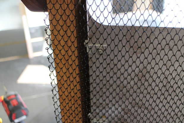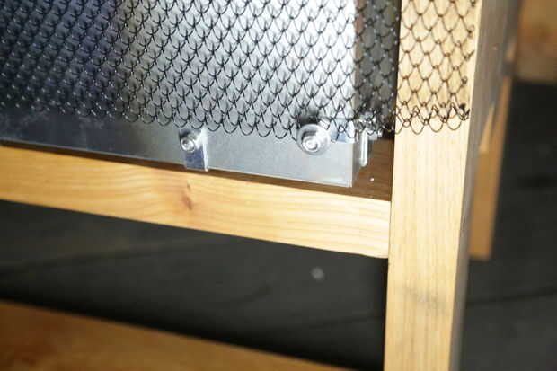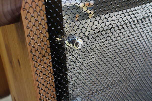 Con ambos extremos sujetados, luego añadí más barras a lo largo de la parte superior de la pantalla para guardarlo de caer. La colocación de la barra inferior en el frente hace la pantalla doble debajo del frente del cubo, esto evita que nada se derrame hacia fuera.