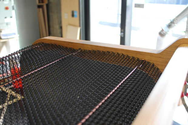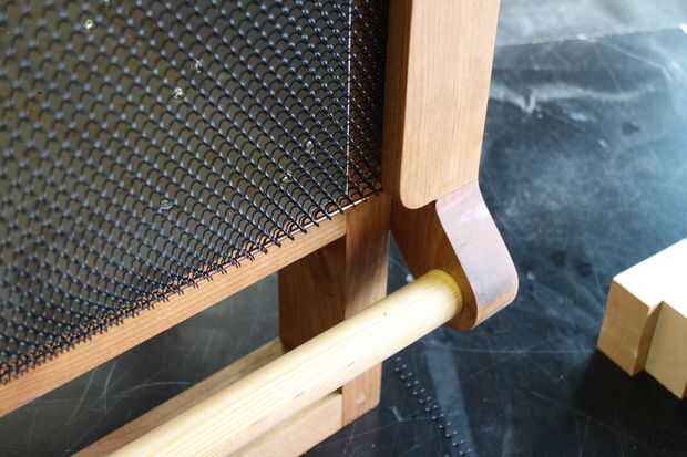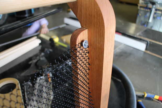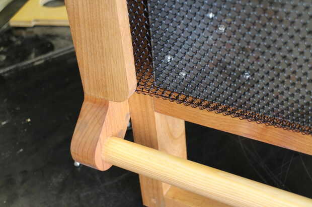 Con las dos pantallas conectadas, he añadido una barra en la parte delantera. Para mantenerla en su lugar, coloca a hacer un gancho. Una vez en la primera varilla, había atornillado en la parte inferior de las bridas de madera en la cáscara de la almeja con arandelas y tornillos para madera.