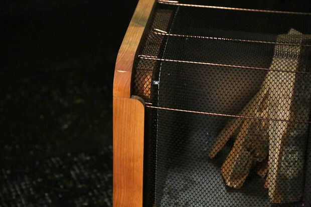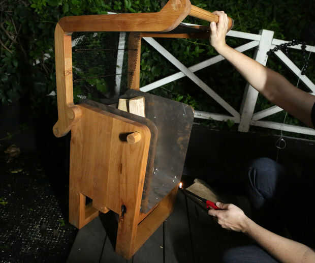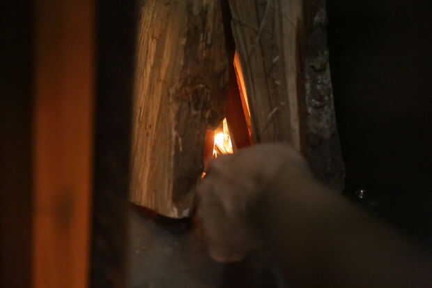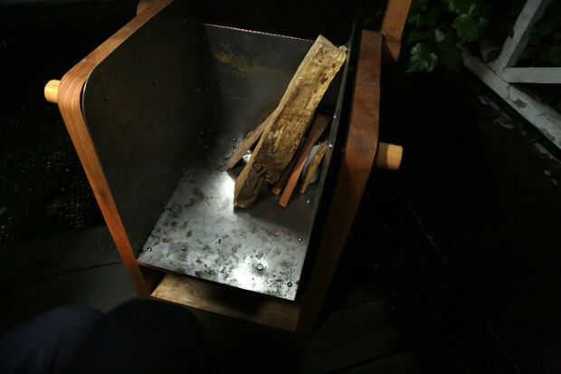 A partir de un incendio parece que funciona mejor haciendo el método de tipi apoyado contra una de las esquinas. Registros de papel en el centro, encender sobre eso, sobre la leña.