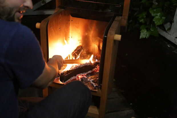Después de 10 minutos de mirar el fuego y tocando la madera para ver lo caliente que se estaba haciendo, mi esposa (la omnipresente voz de precaución) me convenció de que esta es una característica estúpida que es inútil una vez que está hecho con la cosa, así que la corte. Más combustible para el fuego!