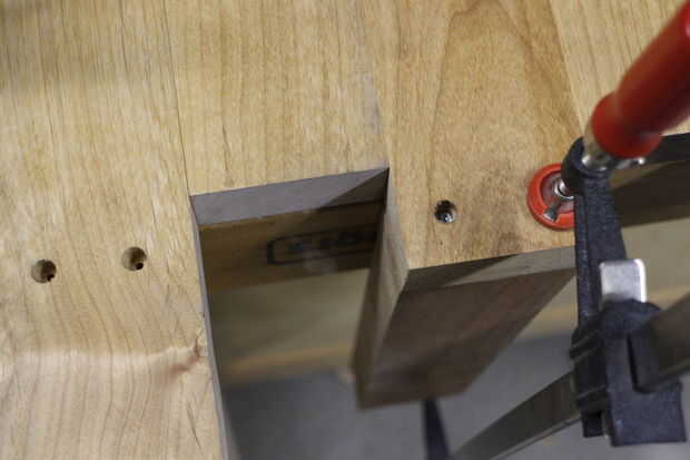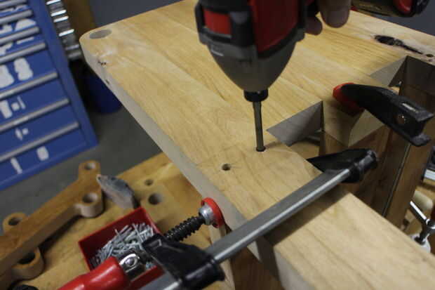 Ya que no quería que los sujetadores expuestos en la madera, decidí Avellane los tornillos y ocultarlas con tacos. Esta parte es bastante sencilla que la avellanadora perfora un orificio para el tornillo piloto más un agujero ancho superficial de la cabeza del tornillo.