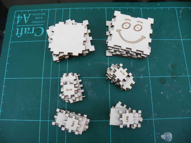 Porque los brazos y las piernas son muy similares pero no idénticos, que decidí marcar cada una con una etiqueta - sólo agrega unos 45 segundos para el corte y ahorra accidentalmente, pegar las partes mal.