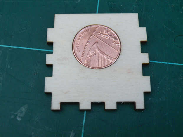 Los agujeros son del tamaño exacto de un penique británico - unos instantes con un pequeño martillo firmemente fricción-se ajusta la moneda en el agujero.