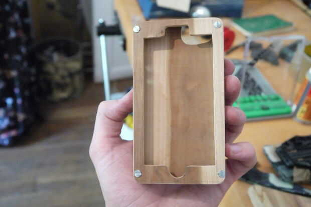 En esta última foto también cinturón de lija en los bordes en forma redonda. Hacerlo, cuando y sólo cuando el caso se atornilla juntos, o no coincidir. Este es un paso opcional pero recuerda a las líneas del iPhone dentro y taaaaaaan hace sensación y apariencia menos voluminosos. Yo también cinturón de lija en la parte superior e inferior a 3 mm de espesor.
