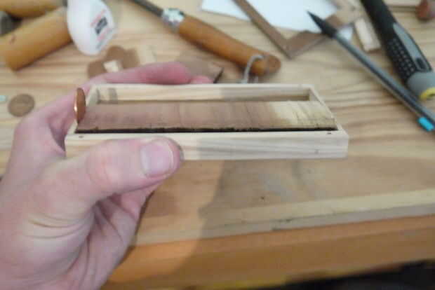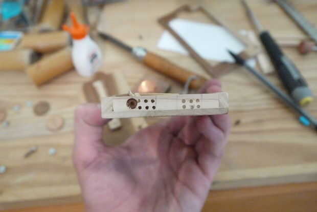 /! \ Antes de perforar, poner un pedazo de madera dentro de la caja (primera foto) para apoyar el lado fino fino fino eres sobre a través de martillo neumático. Él salvará a su proyecto.