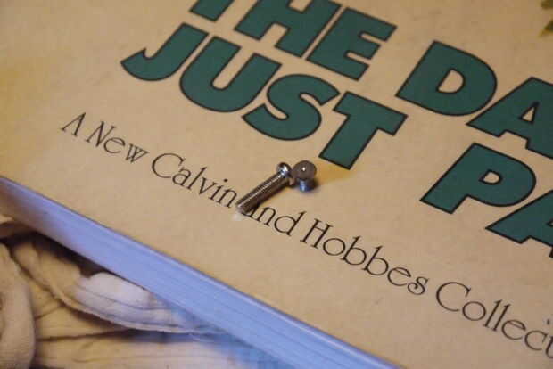 Luego doblado un clavo para pasar entre los agujeros y perforar... ¿Esperar he perdido todo el mundo todavía? Voy a probar otra vez.