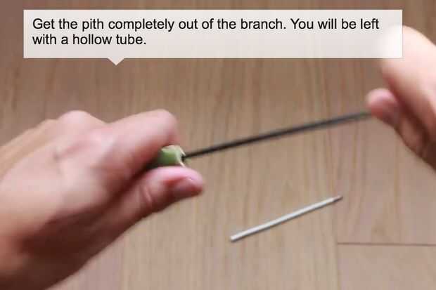 • Obtener la médula completamente fuera de la rama de 3,5 pulgadas. Quedará con un tubo hueco.
