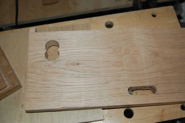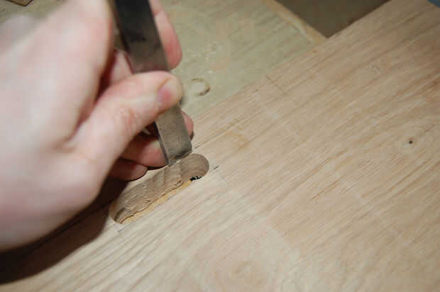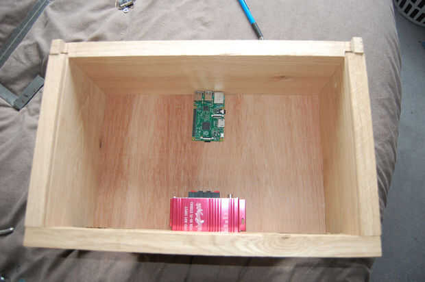 Primero debían establecer dónde estaba la frambuesa pi, y por lo tanto, cómo iba a arreglar la pi a la base. He hecho una caja para un pi antes de capas y unos tornillos que se podían ajustar hacia arriba y hacia abajo en un perno pequeño. Utilicé la misma técnica aquí tan dilled los agujeros y sistema de la pi en la base. Luego marcaron donde el agujero necesario para ser y perfore la mayoría de los residuos con un poco de fostner. Los bordes donde luego arreglado para arriba con un cincel. Después de que había completado esto me seco instalado la base en la parte trasera y se dio cuenta el no podía usar los pernos a las cuatro esquinas a la pi y una vez todo solucionado juntos no podré colocarlo. Por lo tanto sustituyó los pernos frontales con un par de pequeños bloques de madera con orificios a través de ellos. Yo pude Deslice el pi a través del orificio y en los pernos posteriores. Los bloques pequeños podrían deslizarse por debajo y asegurados con un tornillo.