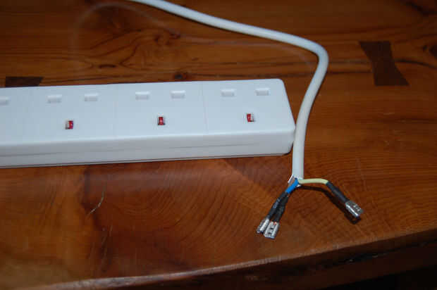 Quería tener un enchufe externo para mi caja de música por lo que he utilizado un tapón de extensión de 4 vías que yo por cable a una toma de entrada fusionada red conmutada. Esta idea surgió de este instructable 2-jugador-Bartop-Arcade.