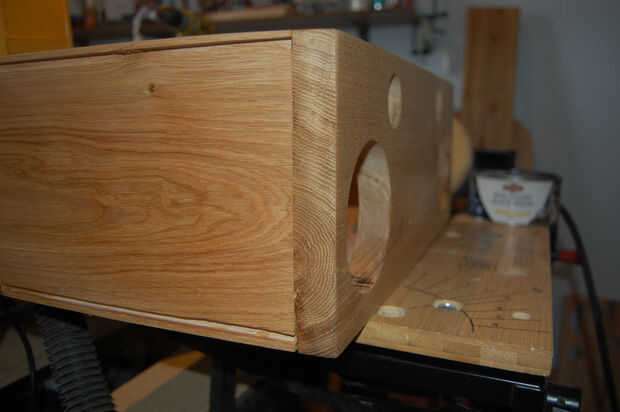 Los reembolsos/rebajos para el fondo y la tapa deben cortarse. Estaba usando madera contrachapada para la parte inferior y madera contrachapada con la chapa de la nuez de arriba usé una broca como mismo espesor de madera contrachapada de mi. Quería que la tapa se deslice dentro y fuera por lo que terminé de lijar la parte inferior del borde de la parte superior, por lo que era capaz de deslizarse sin demasiados problemas. Como se puede ver en mis fotos me cometió un error y cortar ranuras en la cara equivocada de las piezas laterales por lo que acaba de hacer los cortes mismo en la otra cara y ahora tenía una función de' diseño' en el lado de mi armario.