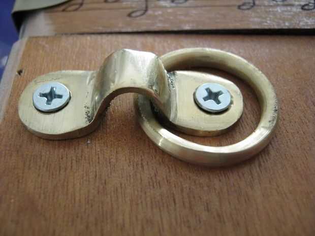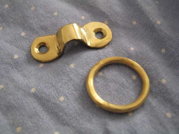 Me he comprado éstos de un mercado local de la marina y son anillos de propósito general para asegurar las cosas en el lado de un barco. Y son hechos a mano de latón. He arreglado los a los lados como se muestra. Otra vez he utilizado las tuercas con el plástico en el extremo como estas tuercas se quedará detrás de la amortiguación y no quiero que se afloje en el tiempo.