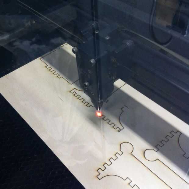 Utilizamos un multiplex de 5 mm de ancho y un lasercutter al 100% de potencia, 40% velocidad.