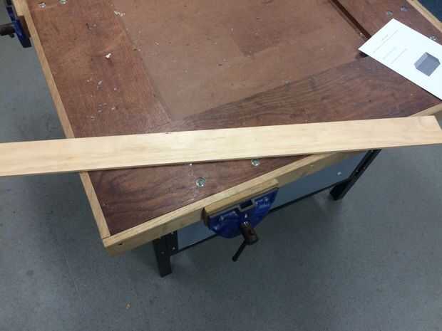 Con una de las piezas de la partida de madera medida y corte hacia abajo el lado largo en tres 30mm x 1200 piezas de madera de pino. Una vez medido dibujar una línea con una regla y un lápiz se corta con una sierra de prohibición. Lije los lados que fueron cortados hasta que estén planas y lisas. Usar el cartabón para asegurarse de que tiene lados perfectos.