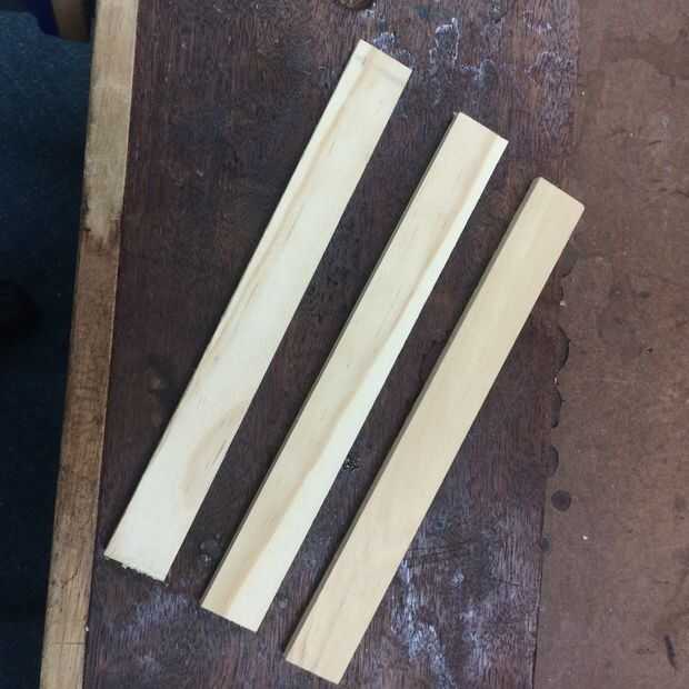 Para cada pieza de la 30 mm x 1200 mm piezas miden tres lotes de 300mm de largo para cada pieza un cartabón para conseguir un perfecto ángulo recto y marcar con lápiz. El corte en las líneas de lápiz con un desplazamiento de la sierra y lije los lados con una lijadora de disco.