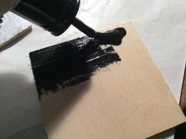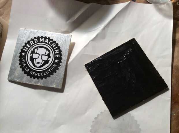 Mientras esperas para que todas las burbujas extras al pop en su mezcla de resina, tomar la pintura con los colores de su elección y y pintar un lado de la woodsie. Estoy usando esmalte de uñas sólo regular, pero otras pinturas deberían funcionar también. Asegúrese de utilizar una imprimación previamente.