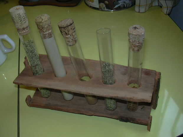 - un bastidor de tubo de ensayo (en el que guardar las especies para cocinar) con alguna corteza he encontrado en un bosque de eucalipto (imagen abajo) me puedes decir cuál es el nombre que en inglés??? Es "titular del tubo"???