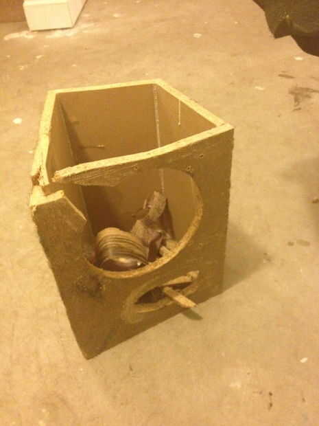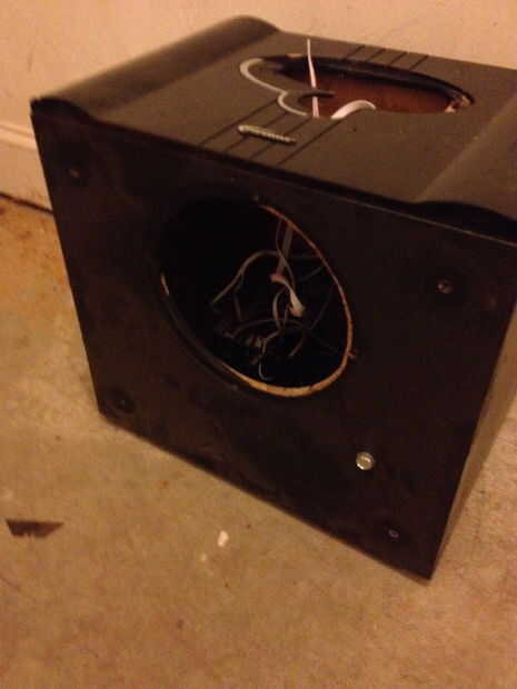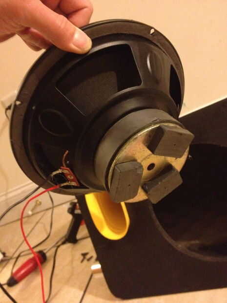 el cono del altavoz se refuerza con la parte inferior de una botella de refresco grueso corte lijada y el interior pintado de negro y pega sobre el cono de centro existente.
