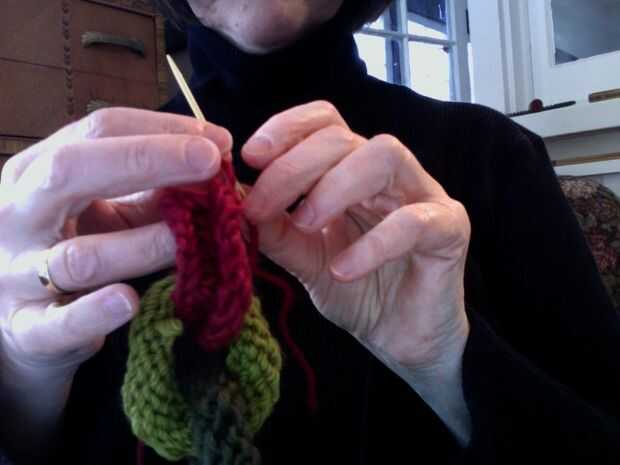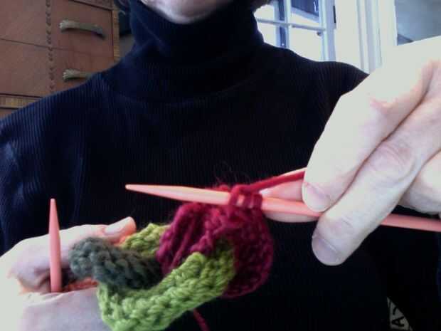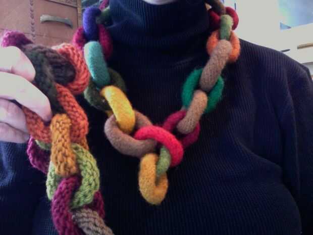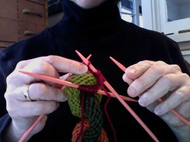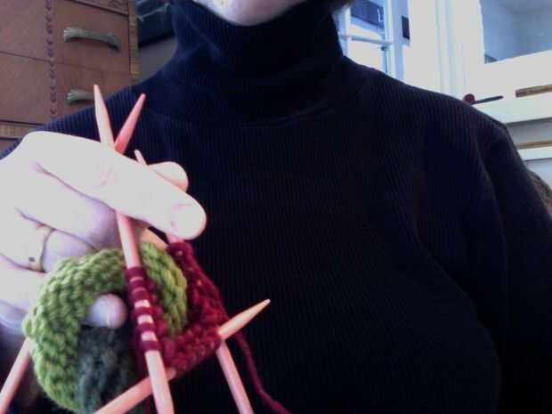 Este es un proyecto fácil, bien para un tejedor de principio que ha hecho punto en la ronda con doble agujas puntiagudas. La única parte delicada es asegurarse de que añade "links" como vas, deslizándolos y moverlos sobre las agujas como vas.