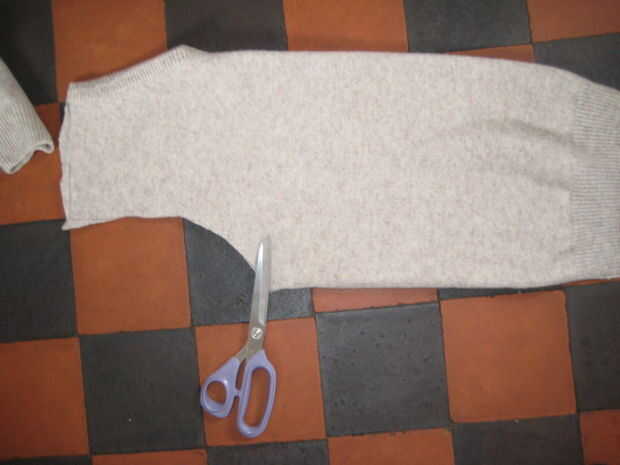 Comience por cortar los brazos. Entonces a través de los hombros y hacia abajo de los lados. Utilice las costuras como guías.