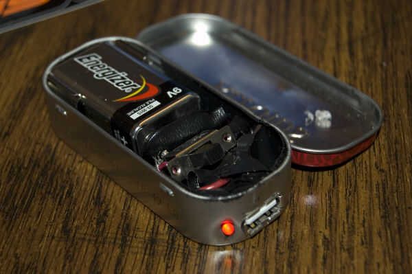 Ahora se utiliza un cargador USB que yo había construido a partir de un kit de electroids.com. Sin embargo, puede utilizar cualquier fuente de alimentación de 5 voltios que le gusta. Mientras que en el trabajo, simplemente esta había conectado a mi ordenador y el sombrero funcionó maravillosamente! Mi paquete de batería recargable USB que tengo de woot! también funcionó muy bien.
