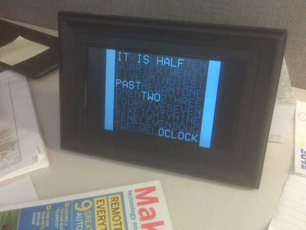 Pero tengo un marco de fotos barato y un poco de tiempo. Usé esta idea:http://www.cibomahto.com/2009/12/word-clock-from-cheapo-photo-frame/