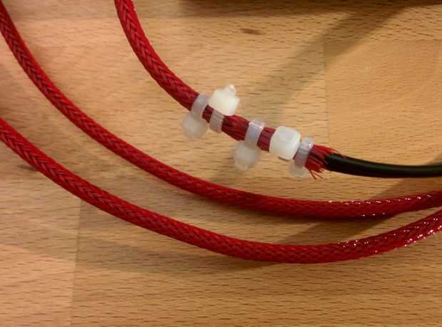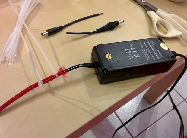 Decidí hacer el cable de alimentación un poco menos feo al poner en una manga trenzada. Es roja porque hay ya algunos otros rojo acentos en mi sala de estar.