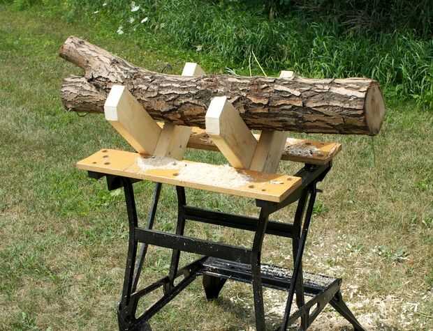 ¿Qué es un sawbuck de todos modos?  Es una cuna que se hace mucho más fácil a la Sierra de troncos y ramas para leña.Si ya tienes una mesa de trabajo se puede hacer en un sawbuck añadiendo una tapa hecha de troncos de split.  Superficie rugosa de los