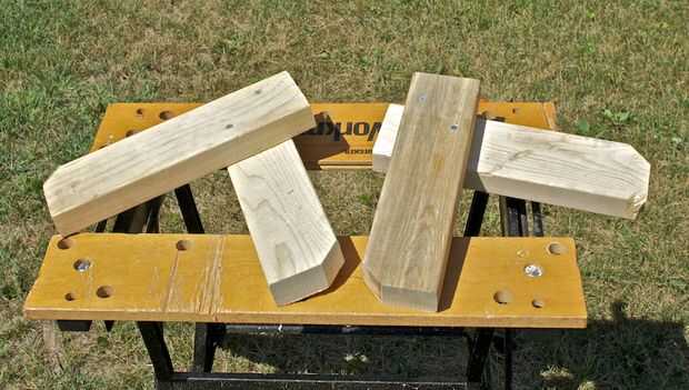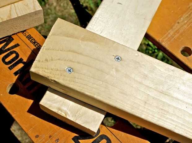 Cuatro 3" tornillos sujetan cada travesaño - dos de un lado y dos del otro. Un apretado agujero fue perforado a través de la pieza de 'top' para evitar la división que afectaría negativamente la rigidez. También, se utilizó pegamento impermeable para asegurar la rigidez absoluta (pero sobre todo porque este manitas le gusta utilizar el pegamento!).