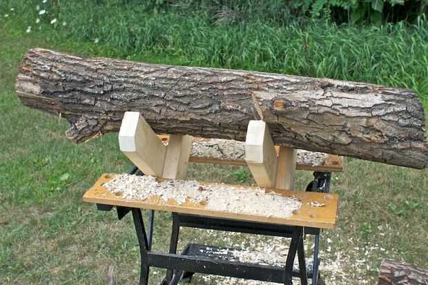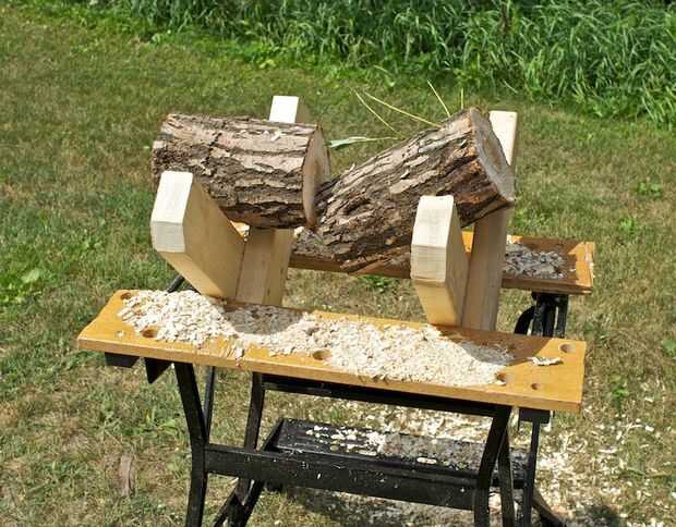 Algunos rotación a veces ocurrirá cuando atacar a un tronco de diámetro más pequeño en un sawbuck madera. Utilizamos una sierra de cinta con una cuchilla 3TPI para cortar madera 3" de diámetro y bajo, pero si un sawbuck para ser utilizado en un montón de acciones más pequeñas, entonces algunos 'dientes' podrían ser improvisados en la parte inferior de los prismas - dicen algunos clavos fuertes en y cabezas recortadas de dejar tal vez 1/4" tacos altos.