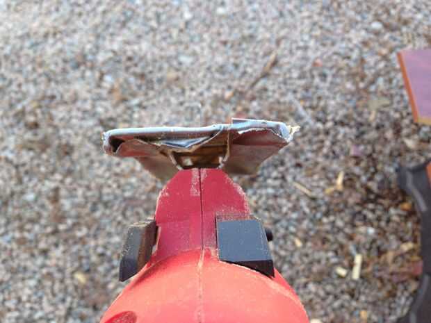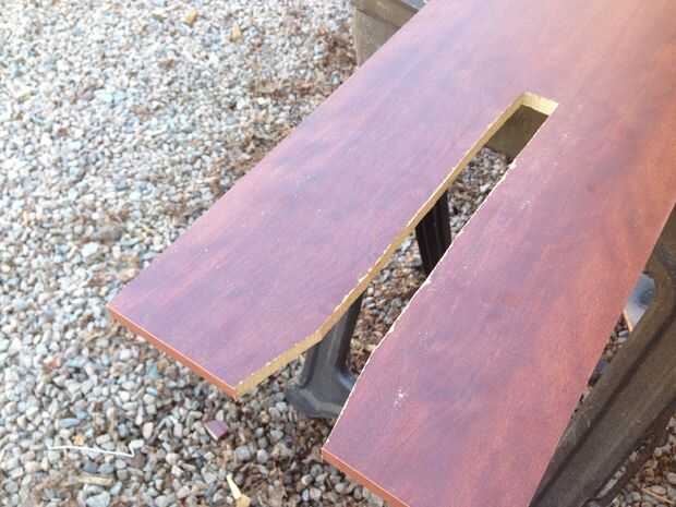 En primer lugar, medir el ancho de la zona entre la base (placa gris) y el cuerpo. Luego, corte una ranura para que la sierra se deslice suavemente. Yo corte una abertura de ángulo al final por lo que es más fácil deslizar la sierra a través.