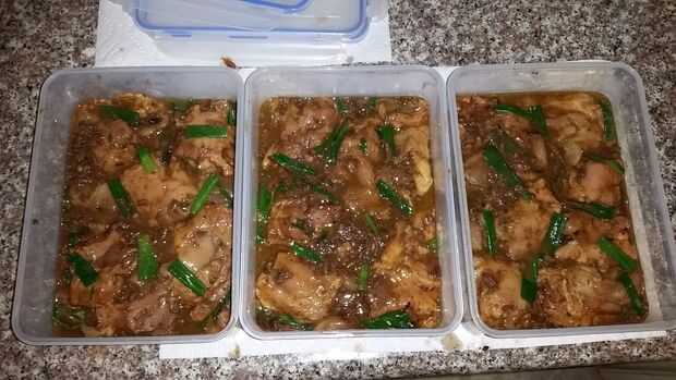 Ahora laicos el tendón en los envases cuidadosamente para que no molestar las capas, cubrir con cebolla. Verter el restante aceite líquido, encima de la mezcla y tratar de extraer de cualquier aire y cubrir la carne tanto como sea posible. Selle los contenedores y ponerlos en la nevera para enfriar.