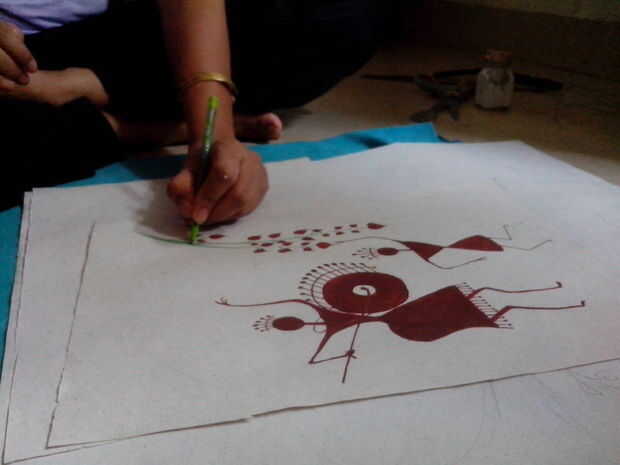 Esto se llama arte de worli, origen indio donde personas expresaron ellos mismos en cuadros fácil en paredes y con el color del barro.