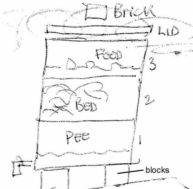 En esta finca de gran altura que las diferentes salas están separadas por los envases individuales, esto no es siempre el caso como se verá desde otra granja gusano en-structables, pero es por lejos el más fácil de hacer la casa en.
