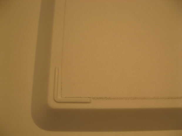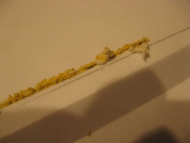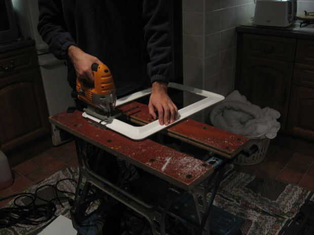 Corte cuidadosamente a lo largo de la línea, tratando de mantenerse dentro de él. (Usted siempre puede cortar más, pero te puedes volver si se corta demasiado!) Usé la regla/barra de guía en mi sierra para ayudar a mantener una línea recta.